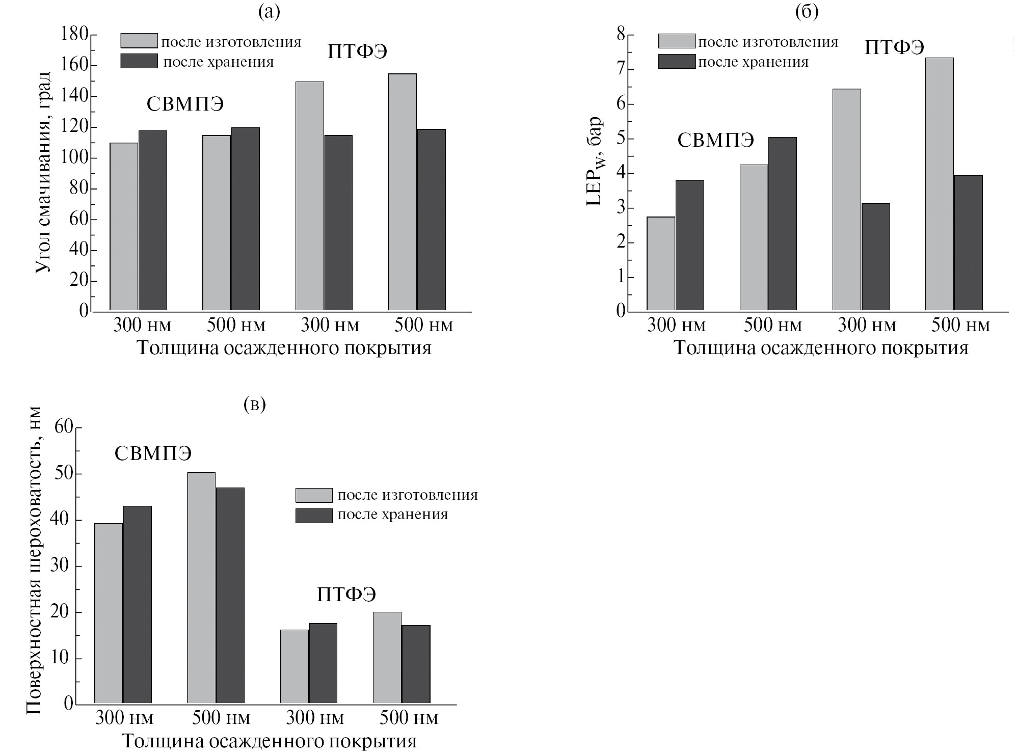 ПТФЭ, 300 нм | после хранения | 31.5 | 68.5 | — | — |