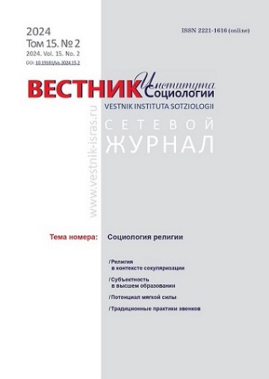 Author's question: “Our countries are multi-religious. Do you share the opinion: “God is one, but religions are different”?” allows to measure not only the depth of faith in the truth of the religion with which the respondent identifies himself, but also the subconscious readiness for interfaith dialogue. Self-identification among those who share their values and lifestyle is important for respondents. According to these principles, a “social circle” is formed, the space of which is “set” by such coordinates as the level of education, material wealth, age, nationality, and confession. A decrease in the importance of religion as a factor ensuring the strength of family ties and the choice of a life partner has been revealed. At the same time, the importance of religious rituals that mark the stages of a person’s life is declining. To compare and substantiate conclusions, the results of sociological studies that are similar in topic or empirical object of study are used. Empirical data allow the authors to conclude: among Nizhny Novgorod students, a respectful and indifferent attitude towards traditional religions remains, against the backdrop of a decrease in the personal significance of religion as a social institution.