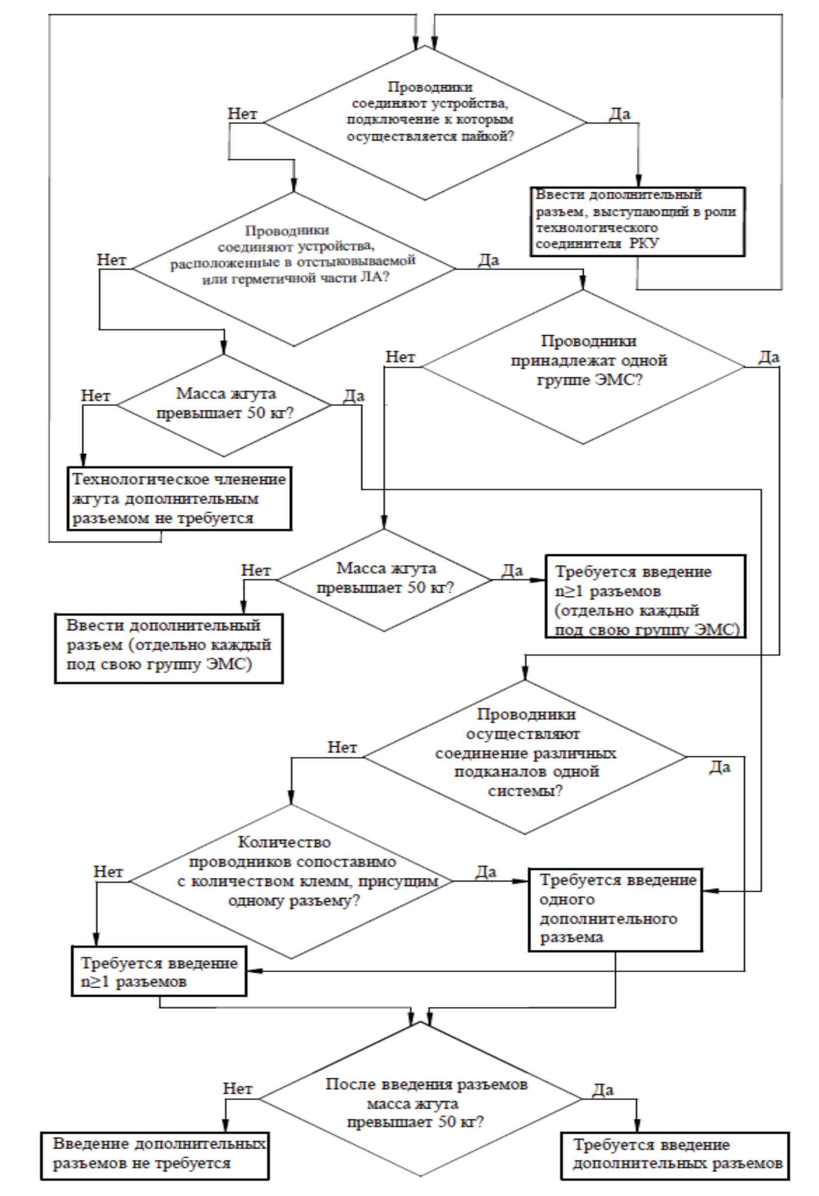 Рисунок 9 – Алгоритм определения целесообразности введения разъёма в электрические цепи БС (согласно РТМ [4] ограничение на массу жгута составляет 50 кг)