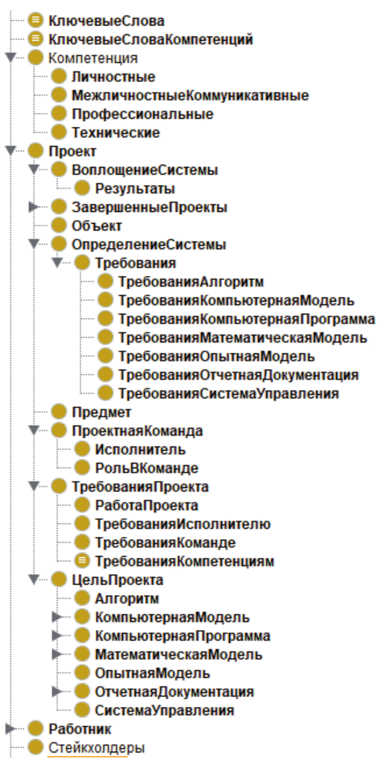 Рисунок 1 – Фрагмент иерархии классов онтологии проекта