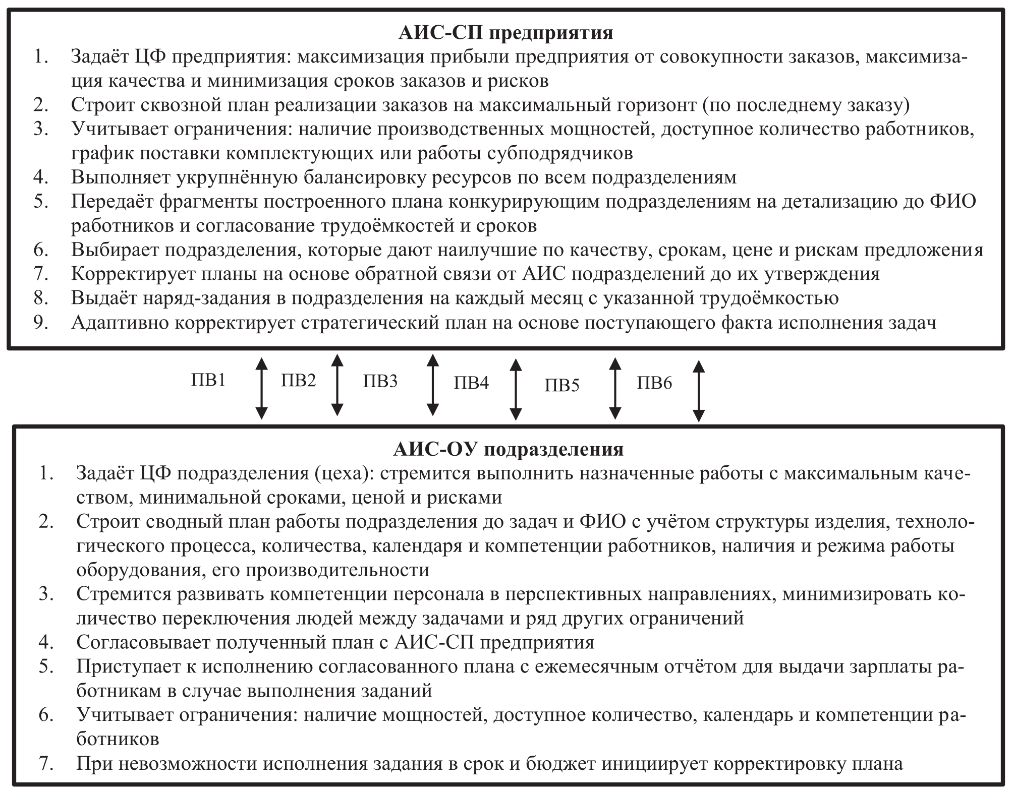 6 | Планы передаются «сверху-вниз» на нижние подразделения без обратной связи | Планы формируются по запросам систем и взаимно влияют друг на друга «сверху-вниз» и «снизу-вверх», а также по горизонтали |