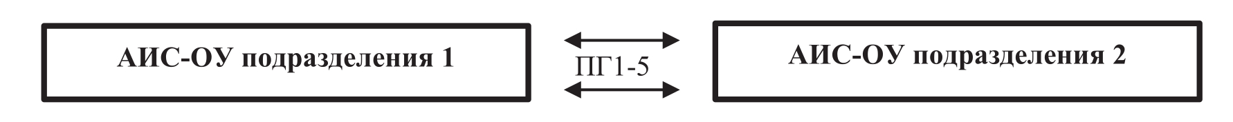 - ПГ1. Согласование срока передачи результатов. АИС-ОП1 первого подразделения передаёт АИС-ОП2 второго подразделения сведения, когда результаты работы будут переданы во второе подразделение, подтверждая данные от АИС-СП, в сквозном общем процессе, что запоминается в АИС-ОП2.