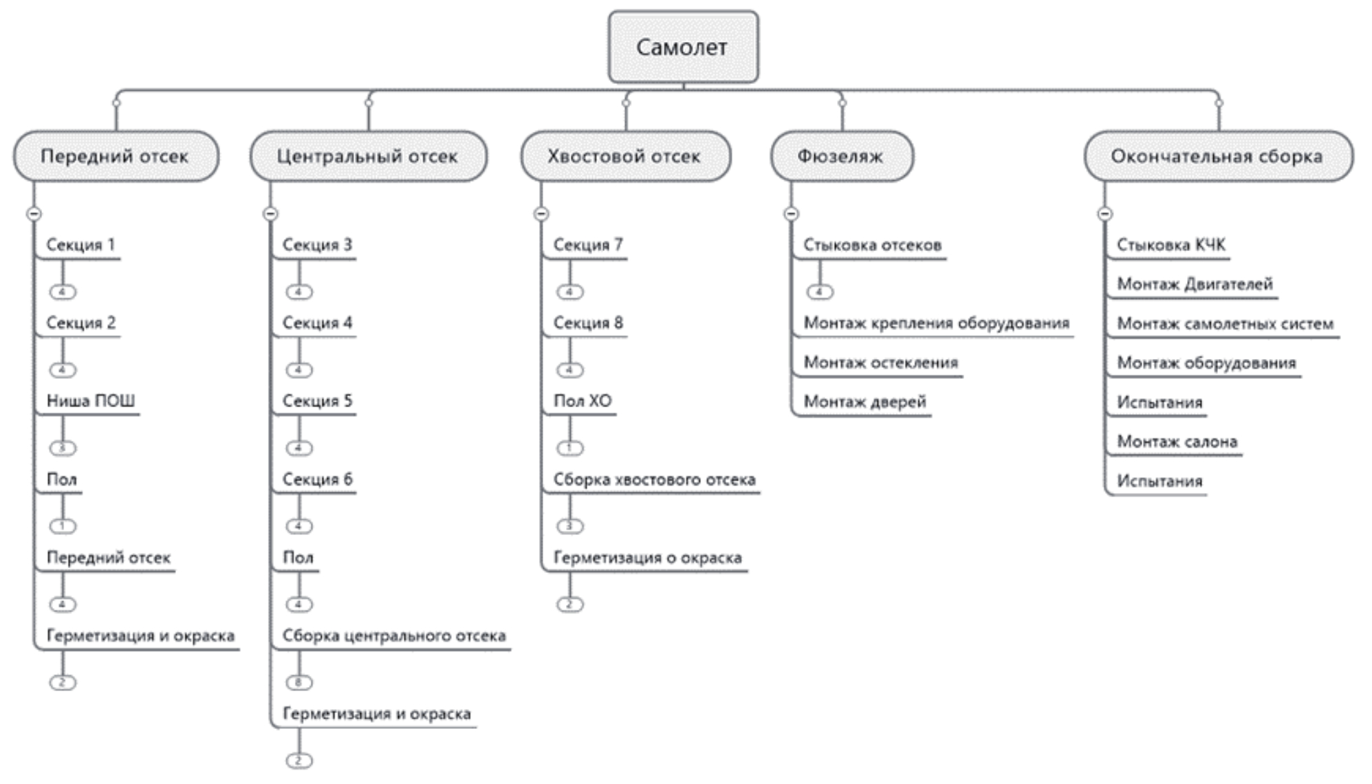 Рассматривалась задача формирования комплексного производственного плана для агрегатно-сборочных цехов производственного предприятия по реализации товарной программы сборки сложных ВТИ на примере конструкции самолёта (рисунки 7 и 8).
