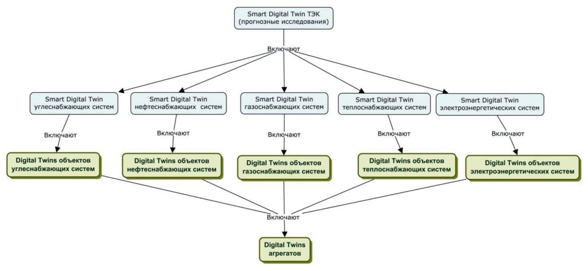 ЦД хорошо зарекомендовали себя на разных этапах жизненного цикла объектов и систем. Основная проблема при построении ЦД – это отсутствие единой концепции взаимосвязи и общего взаимодействия различных уровней управления. В статье предложено использовать ЦД для моделирования и интеллектуального управления энергетическими объектами и системами, которые объединяются единой концепцией.