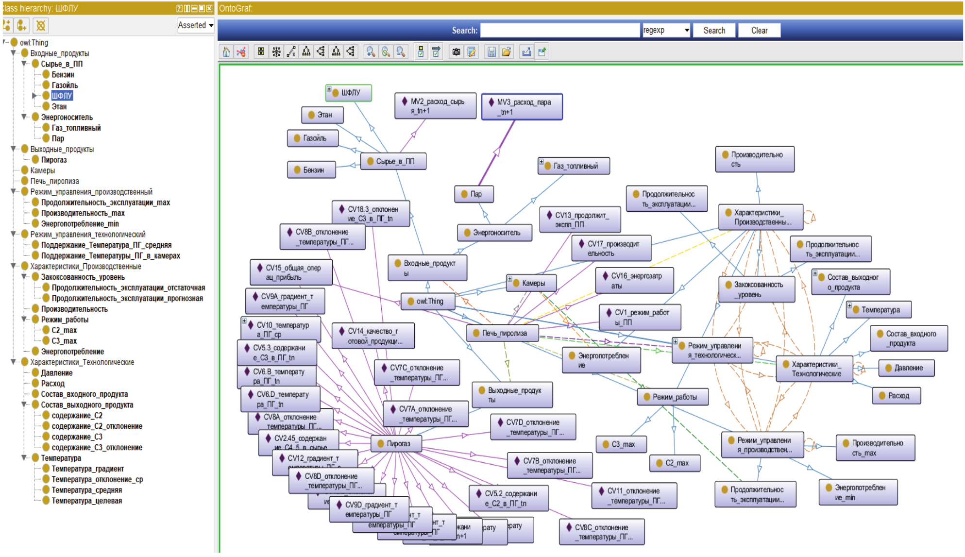 Figure 4 - Fragment of the OM of the management decision-making process for the pyrolysis furnace, formed by means of the Protege software.