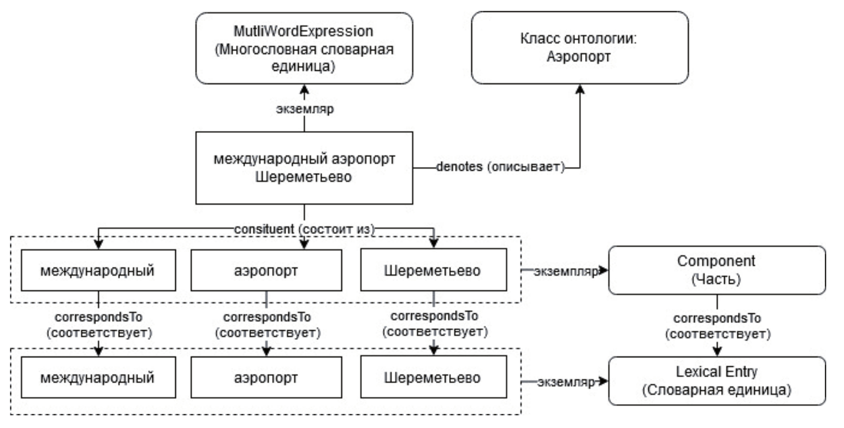 Рисунок 2 - Схема представления многословных наименований понятий с помощью OntoLex-Lemon