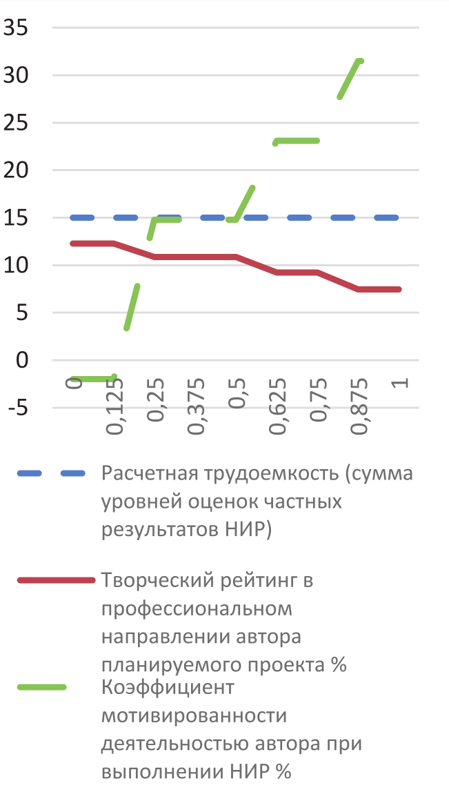 Максимальный профессиональный творческий рейтинга автора НИР | Максимальнаямотивированность автора НИР | Мотивированность автора НИР «важнее» его профессионального творческого рейтинга | ||