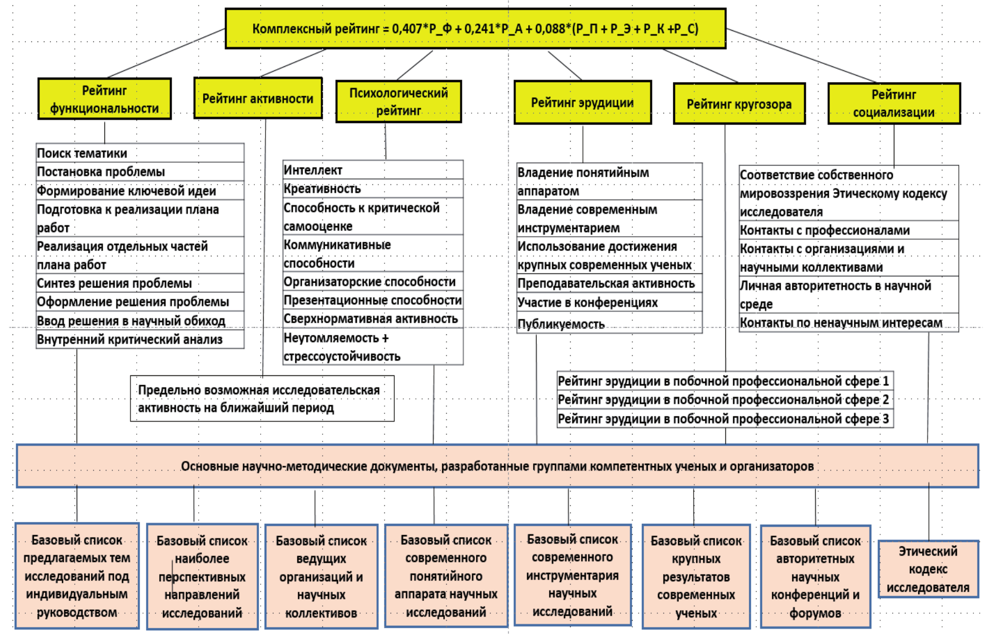 - рейтинг функциональности молодого исследователя по результатам выполненной НИР, % (Р_Ф);