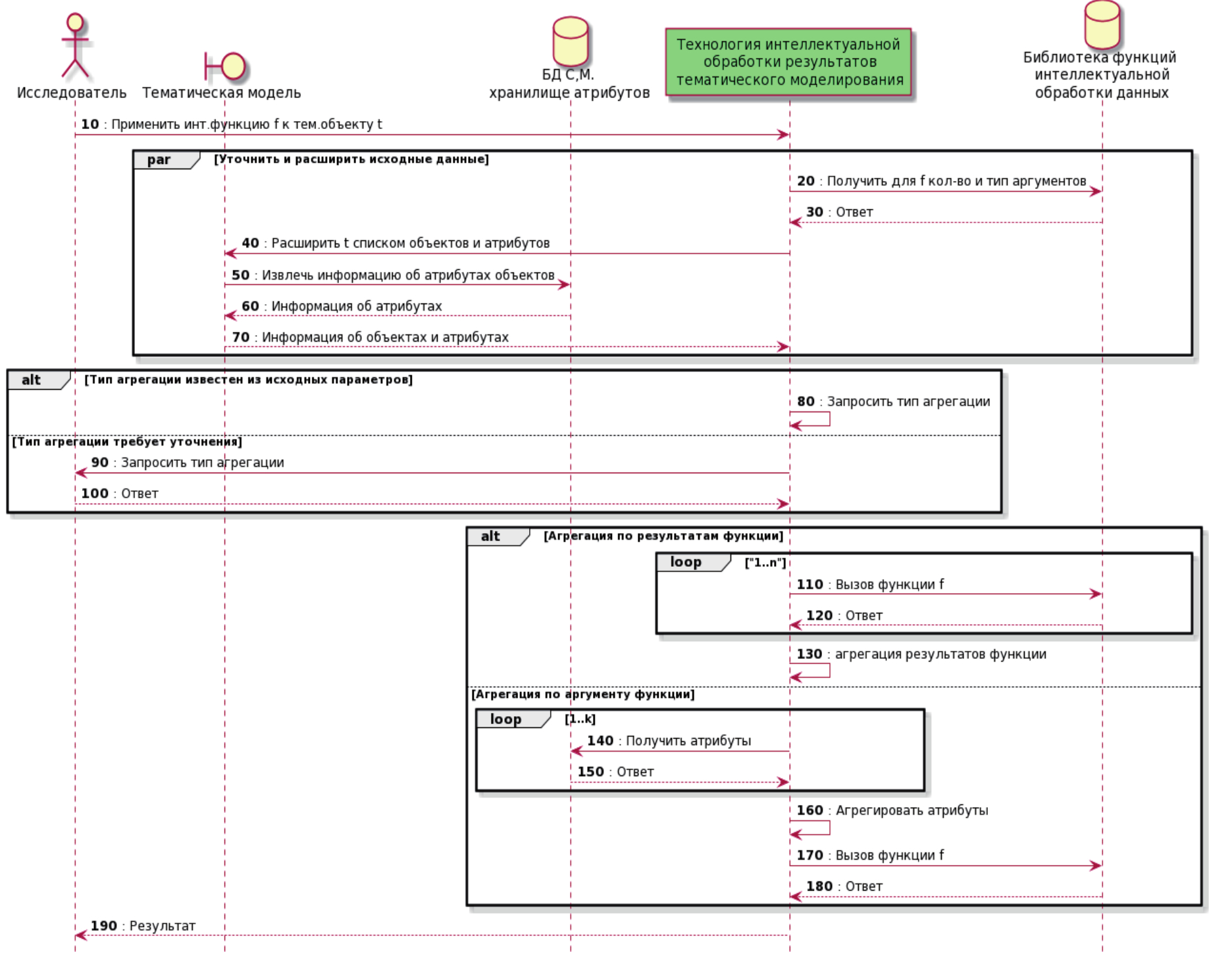 Рисунок 4 – Диаграмма последовательности. Технология интеллектуальной обработки результатов тематического моделирования