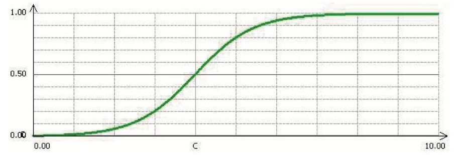 Сочетание склонности ЛПР к риску до точки с и несклонности – после неё моделируется логистической функцией. На рисунке 6 показана возрастающая логистическая функция.