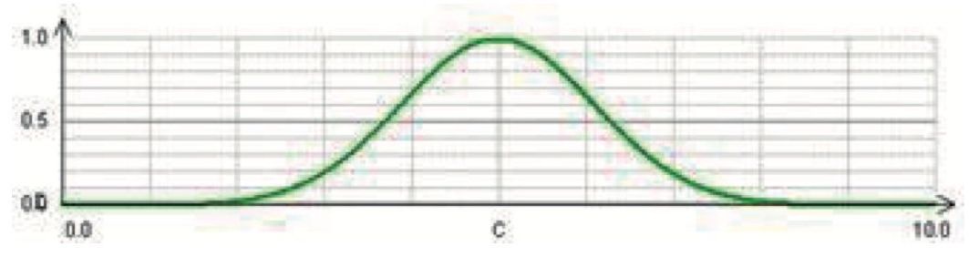 С помощью предложенного кодирования ОцФ на основе предикатов «не менее» и «не более» могут порождаться монотонные ОцФ: пять базовых ОцФ (линейная, парабола, обратная парабола, логистическая и функция Гаусса) и три составных функции (кусочно-линейная, парабола-обратная парабола, обратная парабола-парабола). На основе предикатов Pr∈ (y, [c1, c2]) и Pr= (y, c) порождаются по пять немонотонных ОцФ (см. рисунки 2, 7-10): четыре составных функции (линейная, парабола, обратная парабола, логистическая) и одна элементарная ОцФ (функция Гаусса).