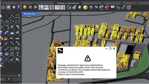 Визуальное представление результатов проверки информационной модели в среде проектирования Rhinoceros, показаны на рисунке 5.