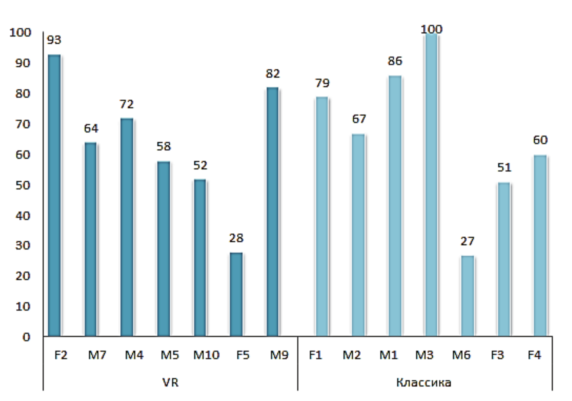 В статье [16] отмечено, что даже плохо успевающие «ВР-студенты» давали на 40…50% больше правильных ответов после изучения темы, в сравнении с контрольной группой [16].