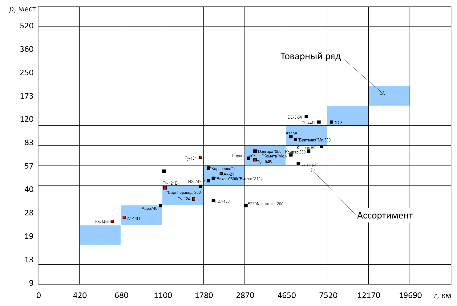 Рисунок 5 – Умеренный транспортный ряд и ассортимент ВС на мировом рынке 1954-1962 годов