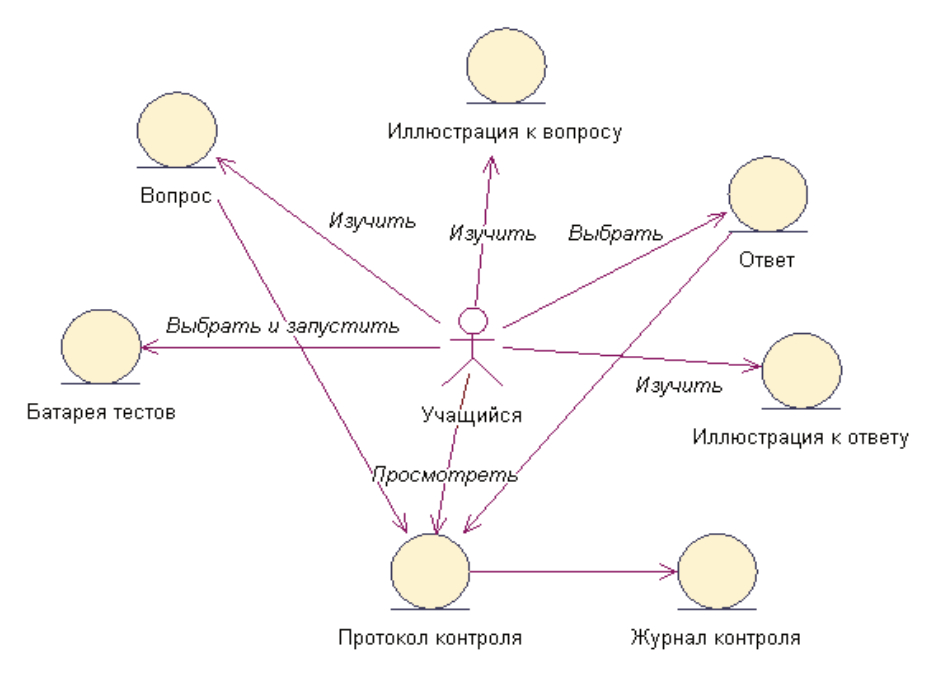 Рисунок 2 – Схема взаимодействия обучающихся и объектов компьютерного тестирования в контроле по теории