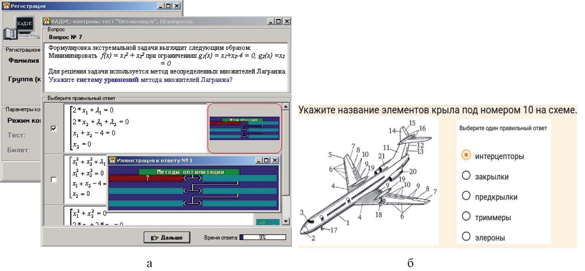 Рисунок 4 – Примеры экранных форм компьютерного тестирования в контроле по теории: а – в системе КАДИС [6]; б – в электронной библиотечной системе издательства «Юрайт» [11]