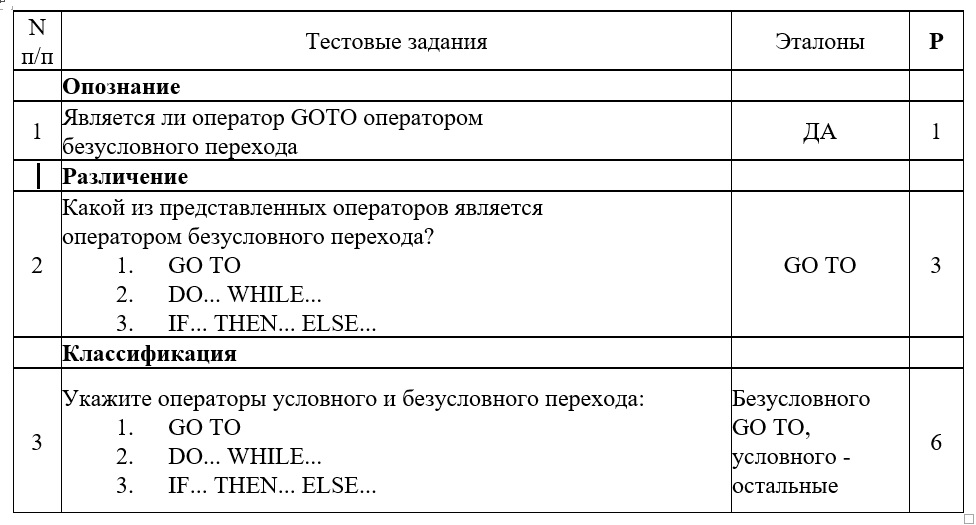 При подготовке тестов целесообразно структурировать их в отдельные наборы по уровням усвоения с использованием таксономий дидактических целей [15-18]. В данной работе структуризация тестов проводится по трём уровням усвоения в классификации [15].