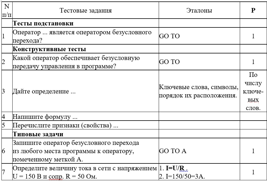 Структуру теста можно представить в следующем виде: Тест = Задание + Эталон. Если в тесте отсутствует эталон, то невозможно провести диагностику и измерение при контроле, сформировать внутреннюю ОС для тренировочных упражнений.