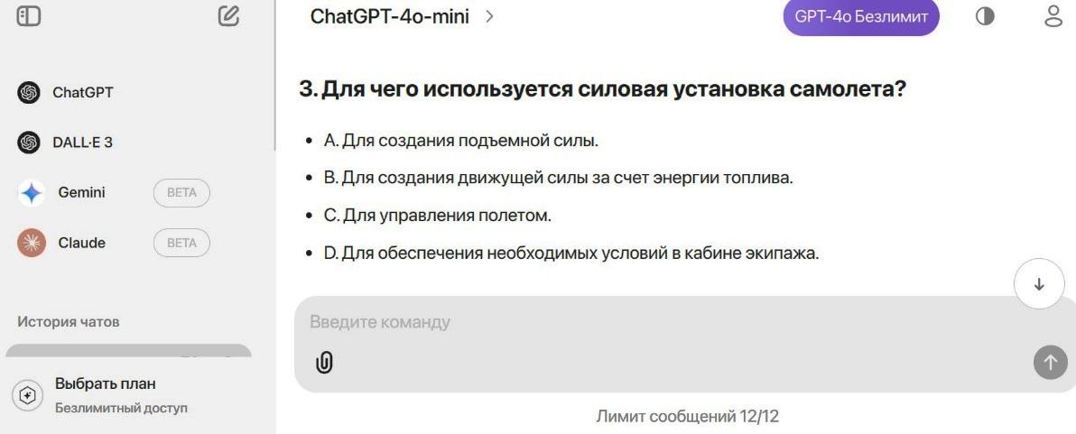 Эксперименты по подготовке компьютерных тестов с помощью искусственного интеллекта (ИИ) проводились с использованием нейросети (НС) ChatGPT-4o-mini2.