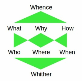 Подобный способ формирования и формулирования вопросов используют онтологи20, создавая модели предметных областей (ПрО). Например, рассматривая графы знаний (ГЗ), описывающих ПрО, онтологи к традиционным пяти контекстным вопросам W («Что», «Почему», «Кто», «Где», «Когда») добавили «Как», «Откуда» и «Куда». Коммюнике построено на основе этих вопросов. «Что» - определение ГЗ; «Почему» ГЗ стали популярными; «Откуда» возникли ГЗ; «Куда» - перспективы ГЗ. «Как», «Кто», «Где» и «Когда» - примеры, методы и инструменты, используемые во многих сферах применения ГЗ.