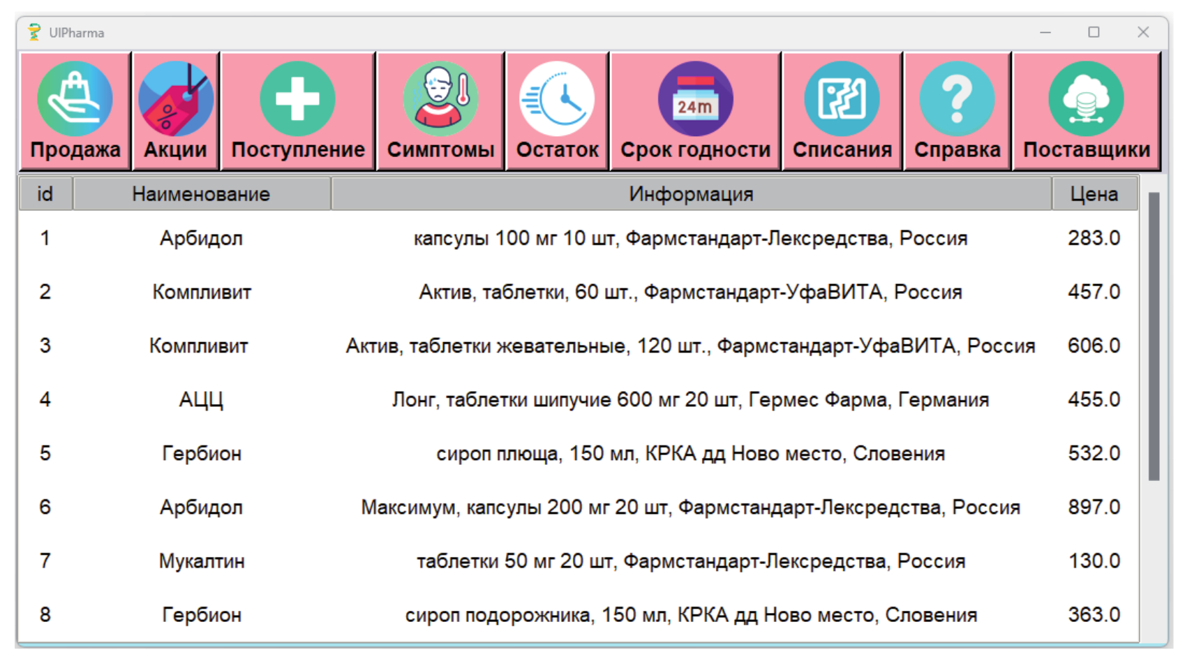Рисунок 3 – Главное окно информационной системы UlPharma