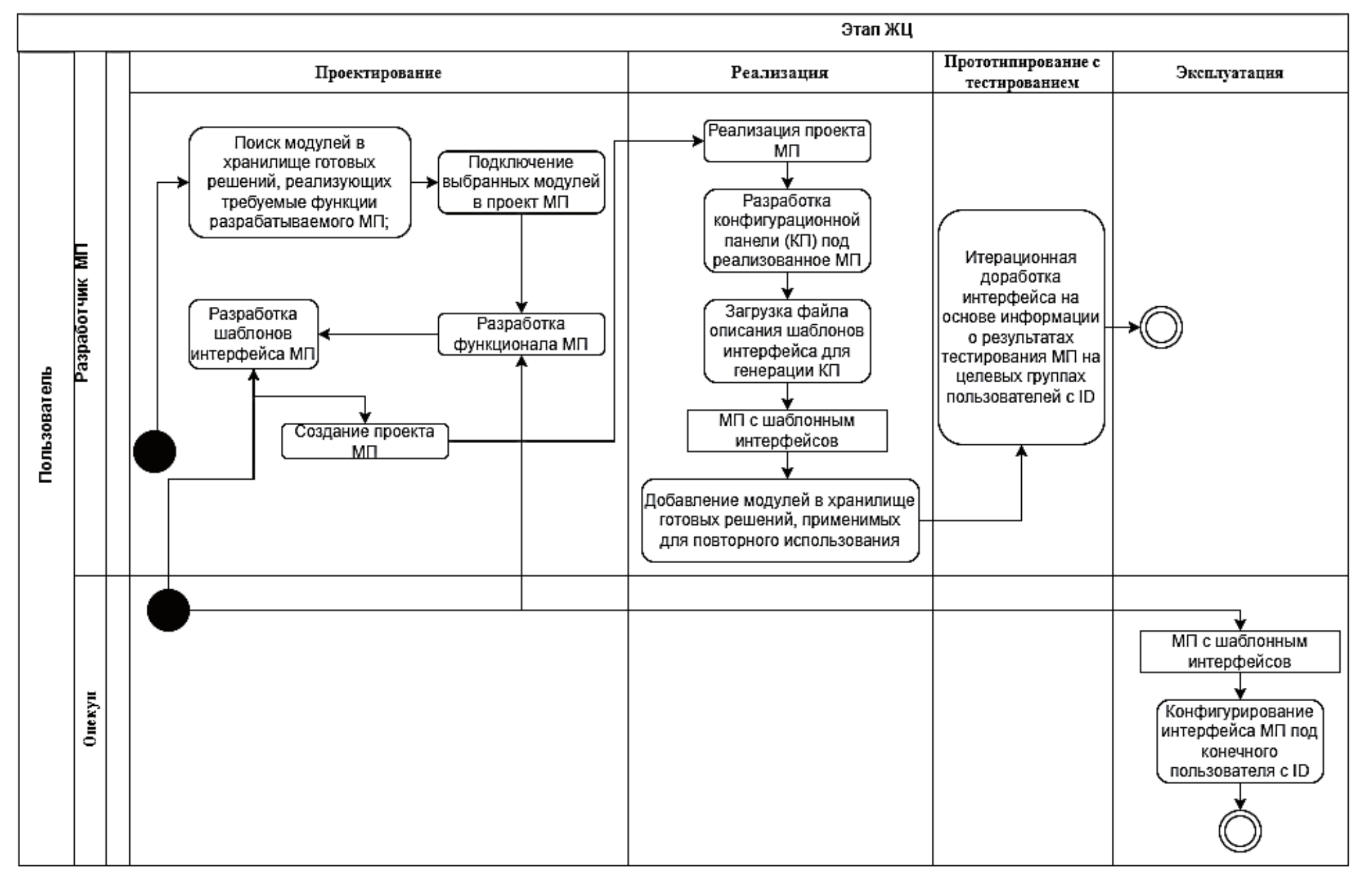 Логическая схема работы системы на этапах ЖЦ МП показана на рисунке 3.