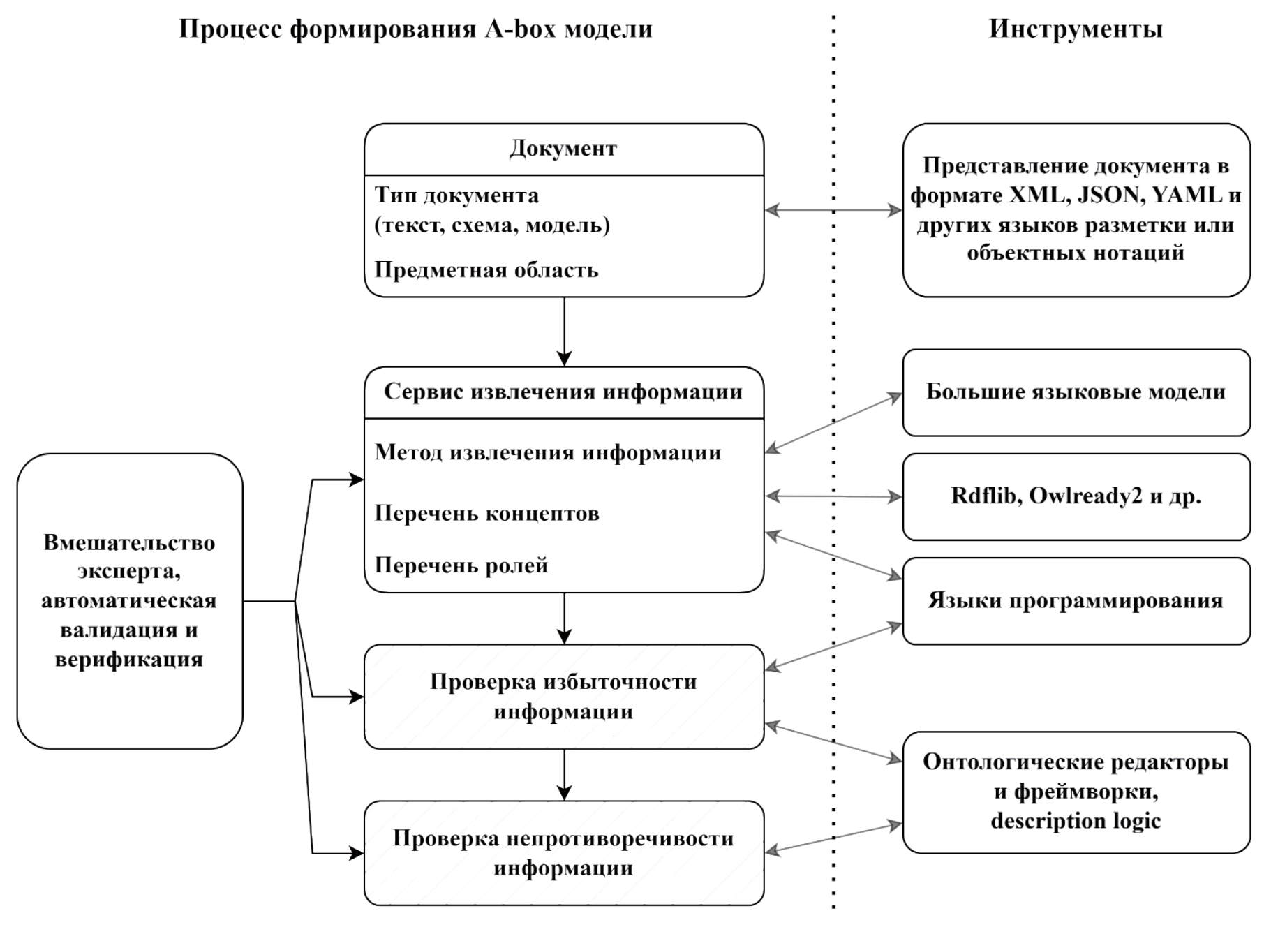 Рисунок 2 – Процесс автоматизации формирования A-box модели и применяемые в нём инструменты