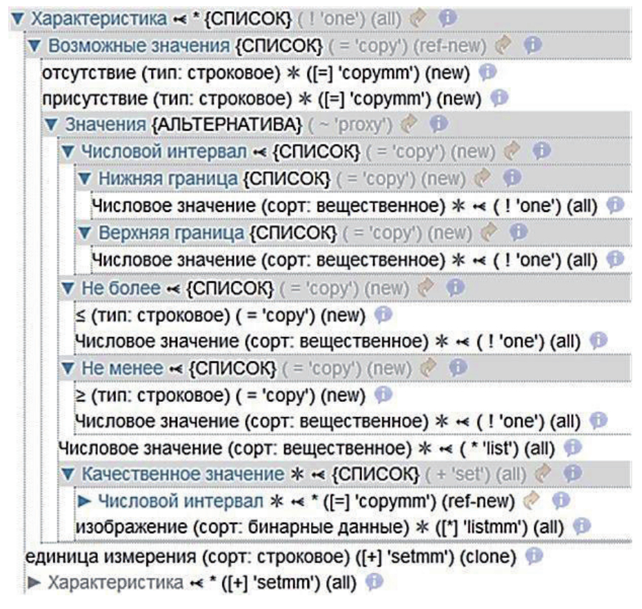 Рисунок 6 – Фрагмент онтологии описания характеристик и их значений: структура раздела Характеристика