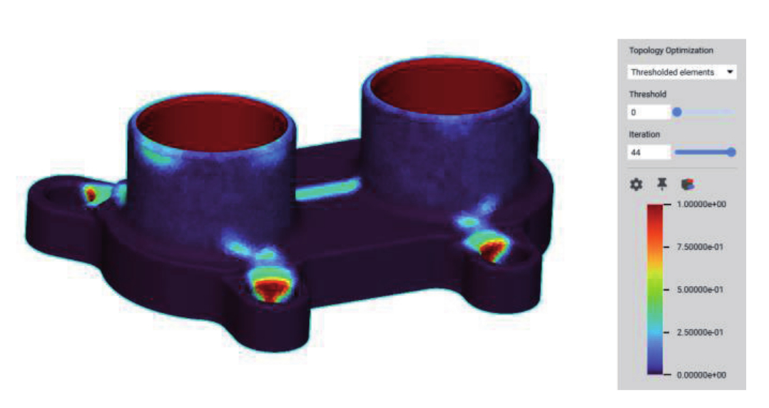 В результате проведённой ТО удалось достичь снижения массы детали на 27 % при сохранении прочностных характеристик. Полученное решение сочетает преимущества ТО и ТПМП, что показывает возможность применения подхода на другие детали силовой установки.
