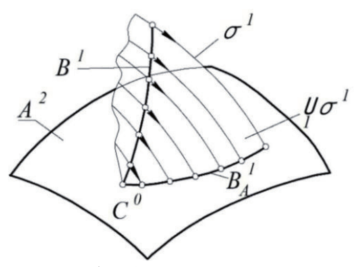 Пункт 1 алгоритма 1 означает получение дискретного множества {Σi2} плоскостей или поверхностей, а запись в итоговом пункте {c10, c20, …, ck0}c0 означает преобразование дискретного множества точек {ci0} в непрерывное множество точек c0 = C1(0), т.е. в искомую линию пересечения A2 B2 = C1(0) на основе интерполяции множества {ci0}.