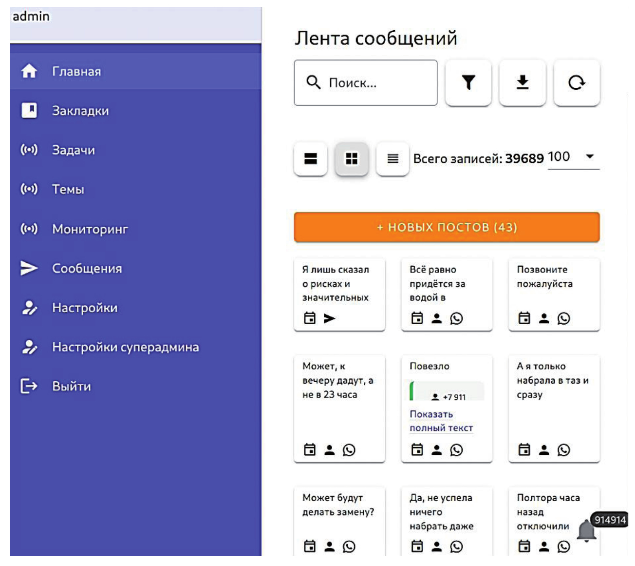 Пример интерфейса ИС в виде фрагмента ленты сообщений социальных сетей представлен на рисунке 4 .
