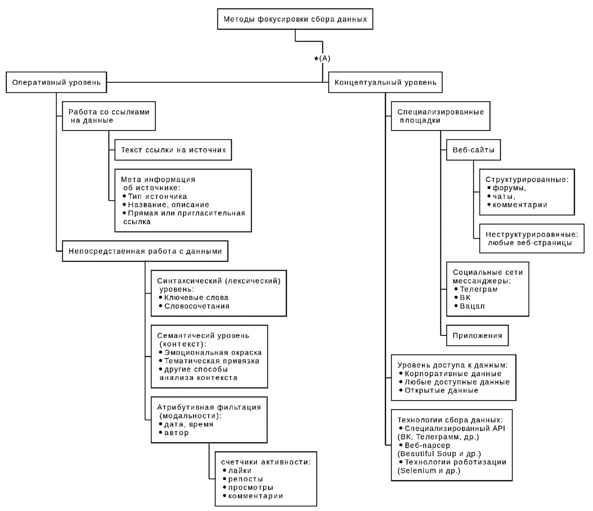 Рисунок 1 – Концептуальная схема технологии фокусировки сбора данных (*(A) обозначает переход к детальному представлению методов фокусировки данных – показана на рисунке 5)
