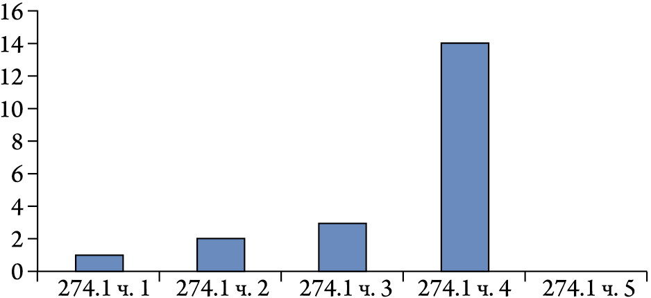 Представленная статистическая информация о числе осужденных за совершенные преступления, предусмотренные ст. 274.1 УК РФ, показывает, что как в 2021 г., так и в первом полугодии 2022-го тенденцией преступных деяний было причинение вреда КИИ РФ, совершенное группой лиц по предварительному сговору, или организованной группой, или лицом с использованием своего служебного положения (ч. 4 ст. 274.1 УК РФ), путем: