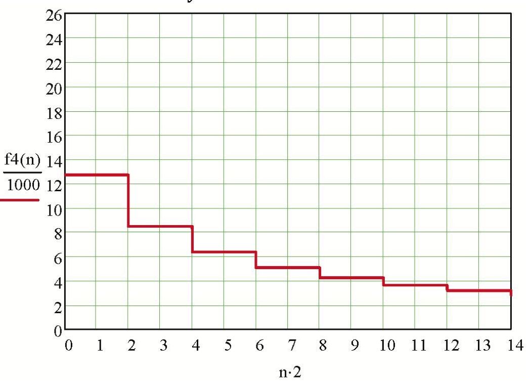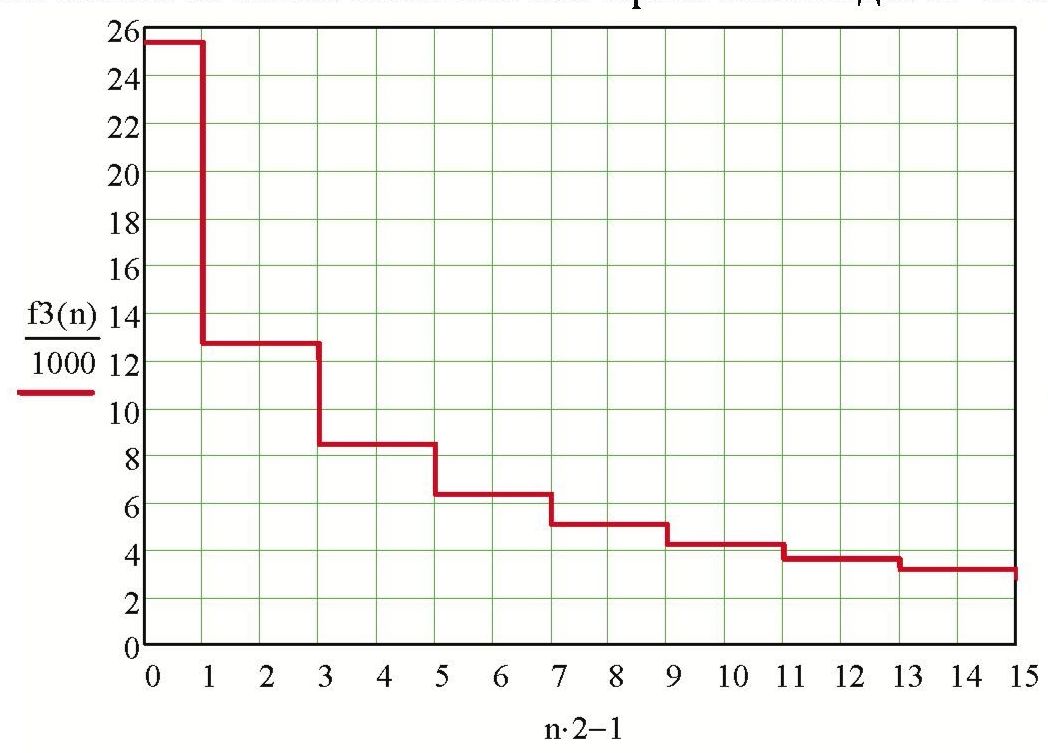 На рис. 8 дан построенный с использованием соотношения (9) график распределения частот АР, соответствующей рис. 5. При построении графика для формирования дискретного изменения количества АИ в решетке использовалась НКЛФ вида