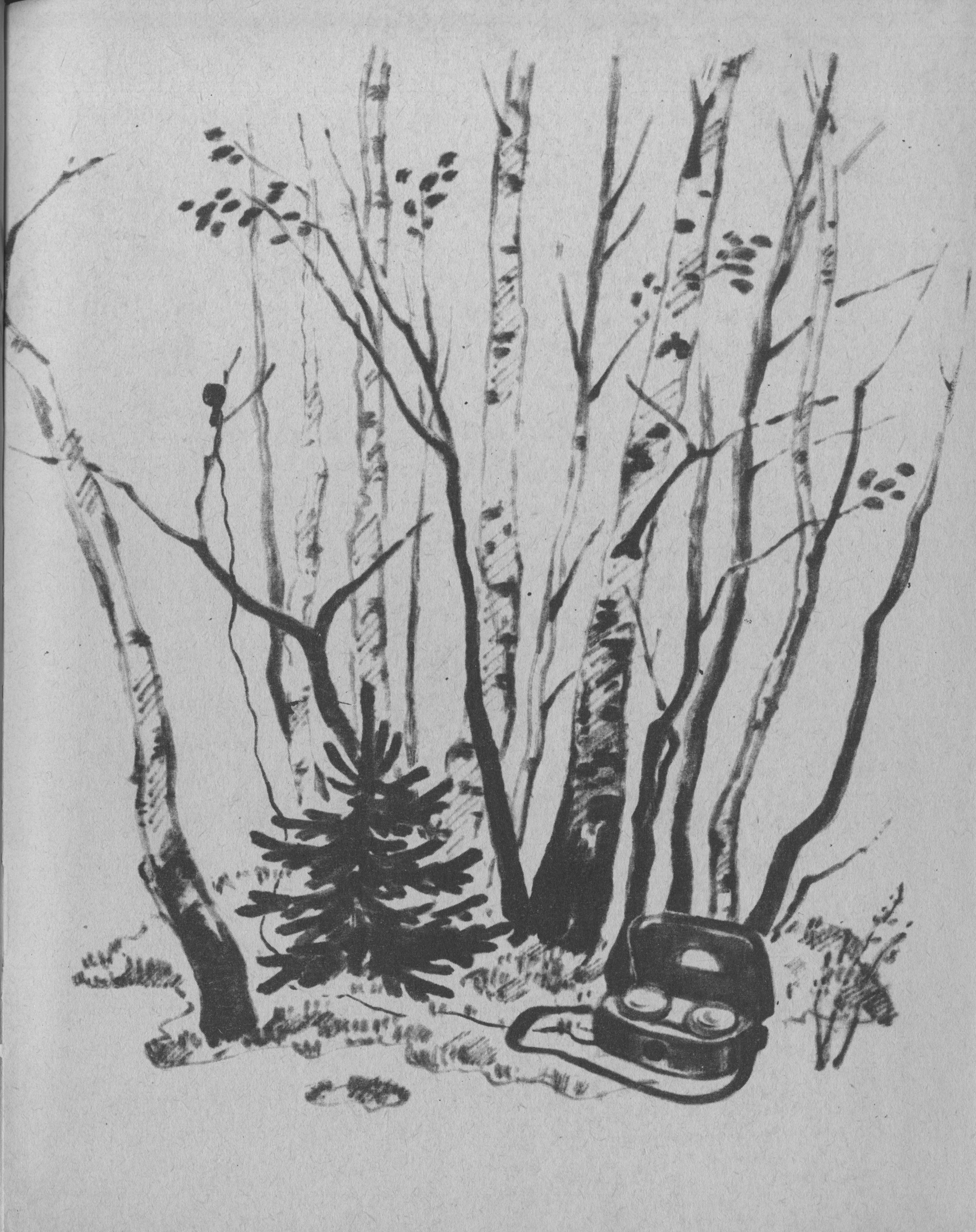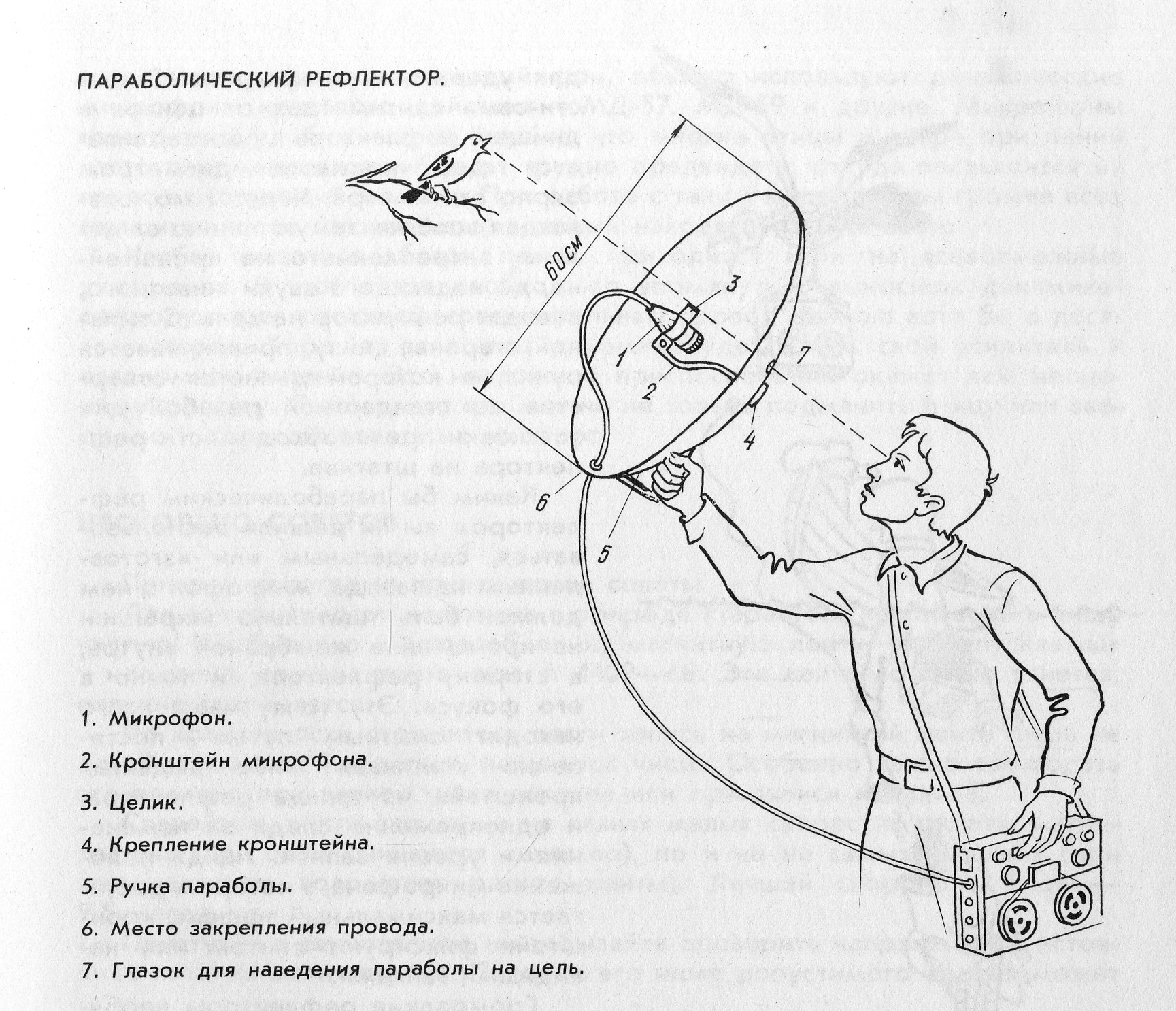 Рис. 2. Графическое приложение к инструкции, как записывать голоса птиц в живой природе. Охота за голосами: книга об охоте с магнитофоном. Л.: Дет. лит., 1982