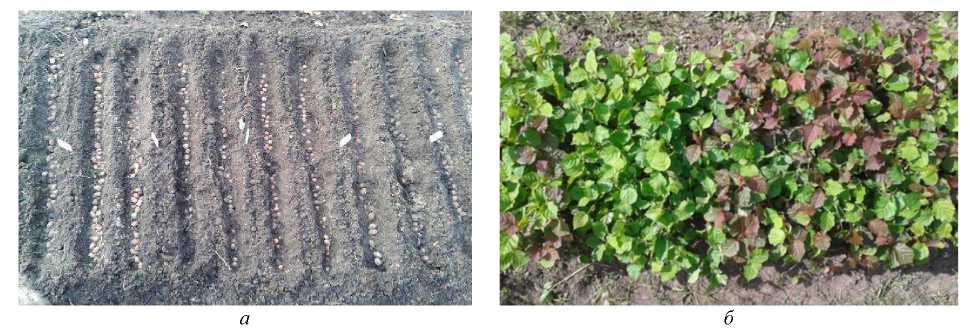 Рис. 4. Семенное размножение сортов фундука: а – посевы, б – сеянцы