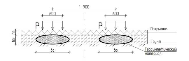 Рис. 1. Конструкция дорожной одежды с геосинтетическими оболочками