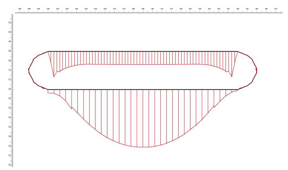 Fig. 3. Deformed diagram for a shell with a thickness of 0.2 m and a width of 1.2 m