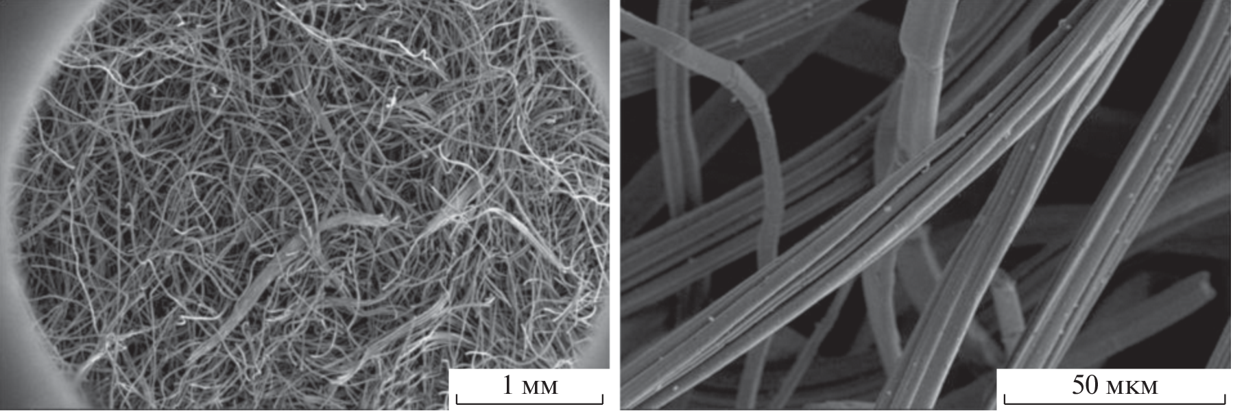 A method for obtaining nonwoven carbon materials by the staged heat treatment of cellulose felt is developed. Fabrics produced from fibrous flax cellulose and viscose fibers by needle punching are used as nonwoven precursors. To obtain carbon fabric precursors the optimum ratios of components are chosen from the data on the formation of nonwoven fabrics and the thermal analysis of various blend formulations. It is shown that the content of flax fibers in the system should be at least 50%. Viscose fibers play the role of a reinforcing material and so far cannot be fully excluded from the system. With an increase in the content of flax cellulose the value of carbon yield grows. The mechanical properties of the carbon felt are provided by the physical network of friction and dispersion contacts between individual fibers. Upon heat treatment of the composite nonwoven material, the morphological features of precursor fibers remain unchanged. The interplanar distances of carbon layers in the carbon material are calculated using X-ray diffraction analysis and transmission electron microscopy. The fraction of carbon upon heat treatment to 1700°С is at least 90%, and after graphitization to 2400°С the purity of the product is above 99%. The maximum values of carbon yield at this temperature may be as high as 25‒27%. The coefficients of thermal conductivity of the carbon felt are measured, and the values obtained are 30% lower than the corresponding parameters of carbon fabrics.