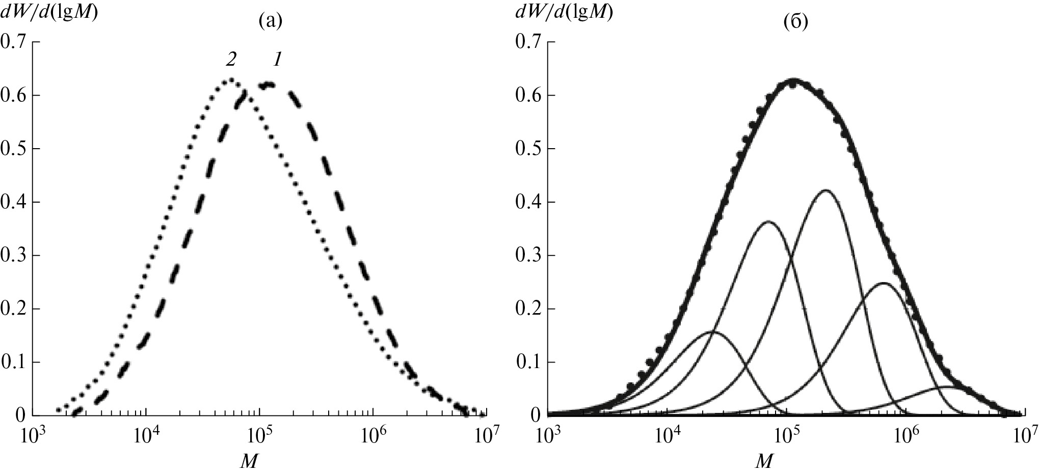 Процедура разложения кривых ГПХ на кривые индивидуальных компонентов Флори описана ранее [16, 17]. Компонент Флори – это полимер, производимый одним типом активных центров; для каждого компонента Флори отношение Mw/Mn = 2.