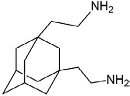 ИК-спектр; ν, см–1: 3361.2 (NH2), 3288.0, 2928.7 (CH), 2855.7, 1608.9 (NH2), 1453.2 (СН2), 13954.5, 1362.0, 1347.5, 1317.0, 1292.8, 1278.0, 1260.0, 1185.0, 1148.0, 1105.0, 1098.0, 1070.0, 1054.0, 1021.0, 988.0, 970.0, 957.0, 940.0, 925.0, 810.0, 762.0, 718.0. Спектр ЯМР 1Н; δ, м.д.: 0.93 (с., 4Н NH2), 1.16–1.39 (м., 12H CH2 Ad, 4H CH2–CH2–NH2), 1.89 (с., 2H CH Ad), 2.63 (с., 4H CH2–CH2–NH2). Масс-спектр (ЭУ, 70 эВ), m/z (I, отн. %): 179 (4.9), 135 (7.9), 30 (100).