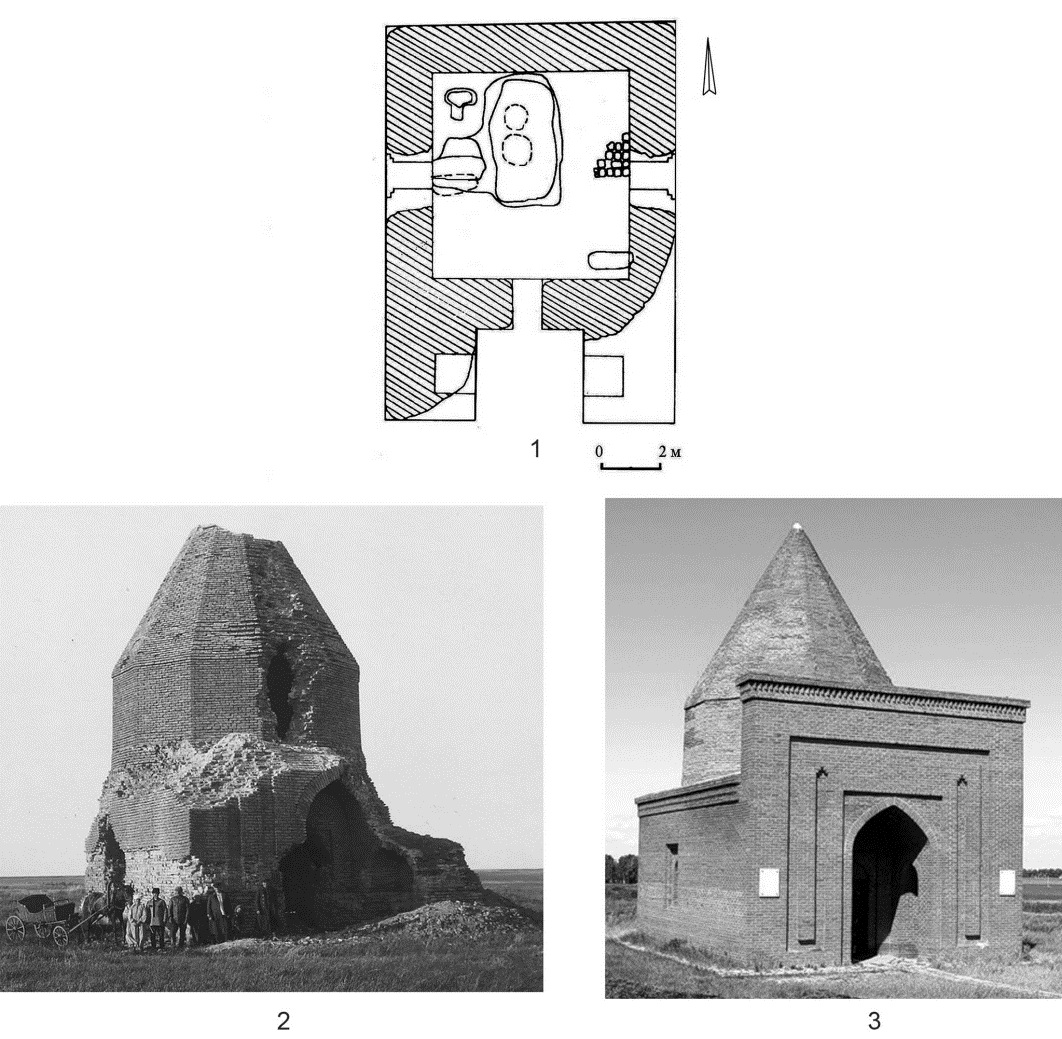 Fig. 4. Kesene Mausoleum: 1 – plan [after 6]; 2 – photograph 1924; 3 – modern look