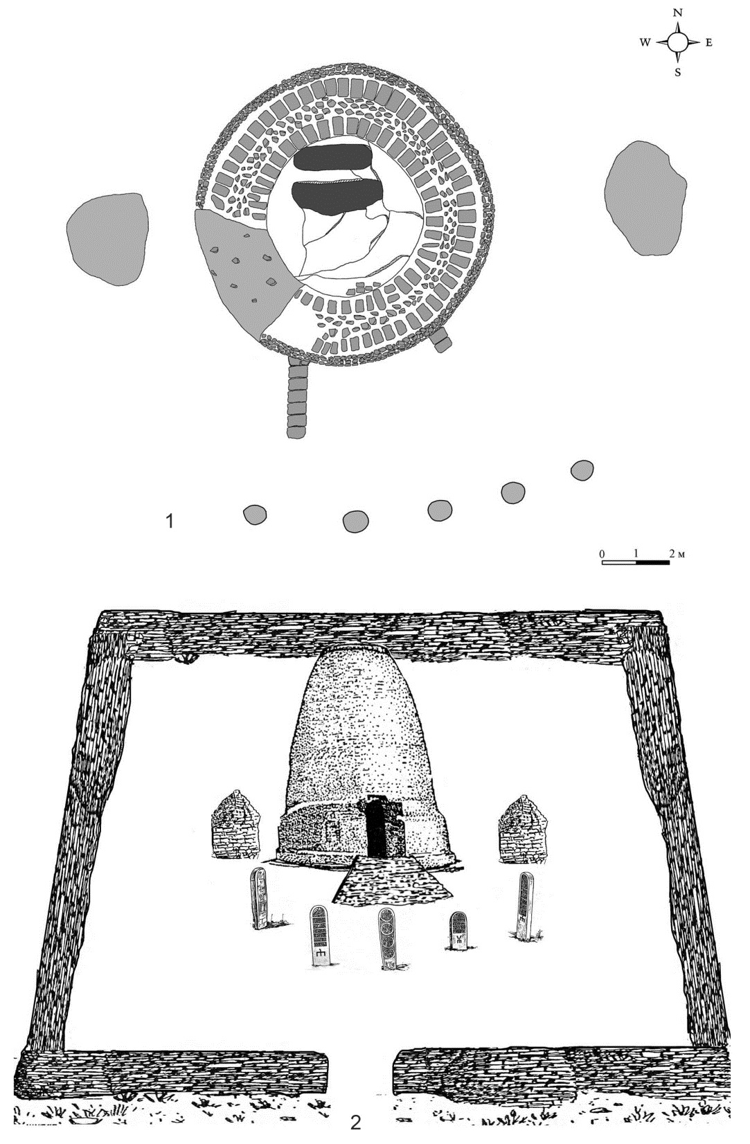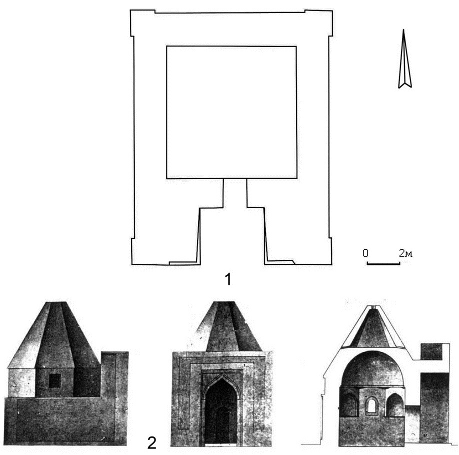 Fig. 6. Bendebike Mausoleum: 1 – plan; 2 – reconstruction (by [26])