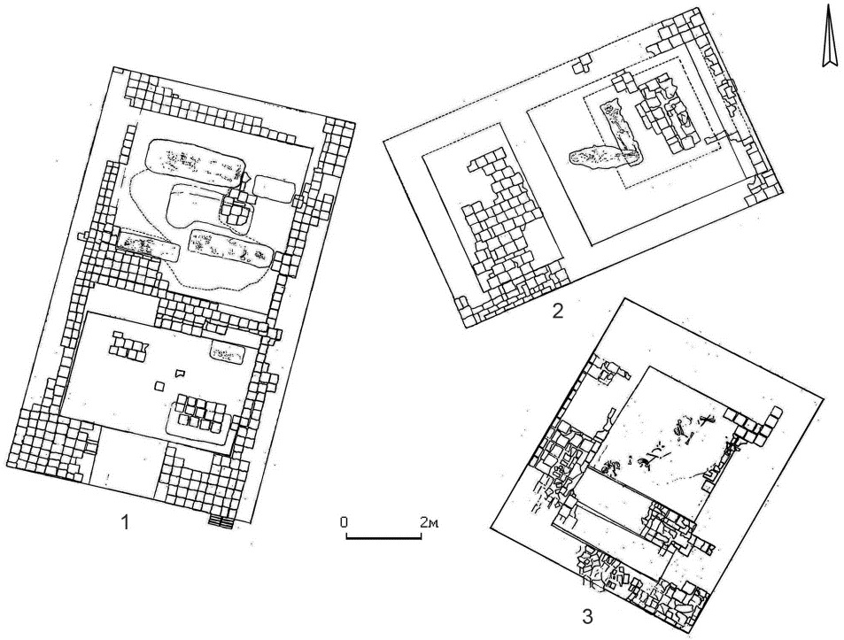Рис. 7. Мавзолеи у пос. Тептяри; 1 – № 1; 2 – № 2; 3 – № 3 (по [31])
