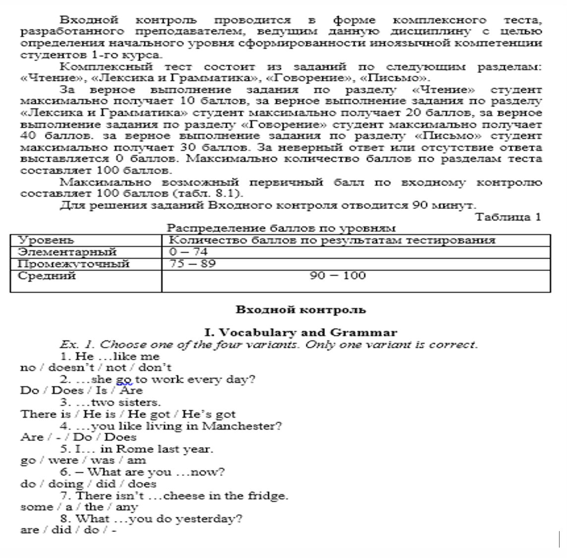 Данное тестирование проходило с использованием материалов Moodle «Дистанционное обучение факультета РиИБ ЧВВМУ (раздел «Иностранный язык») в режиме онлайн.