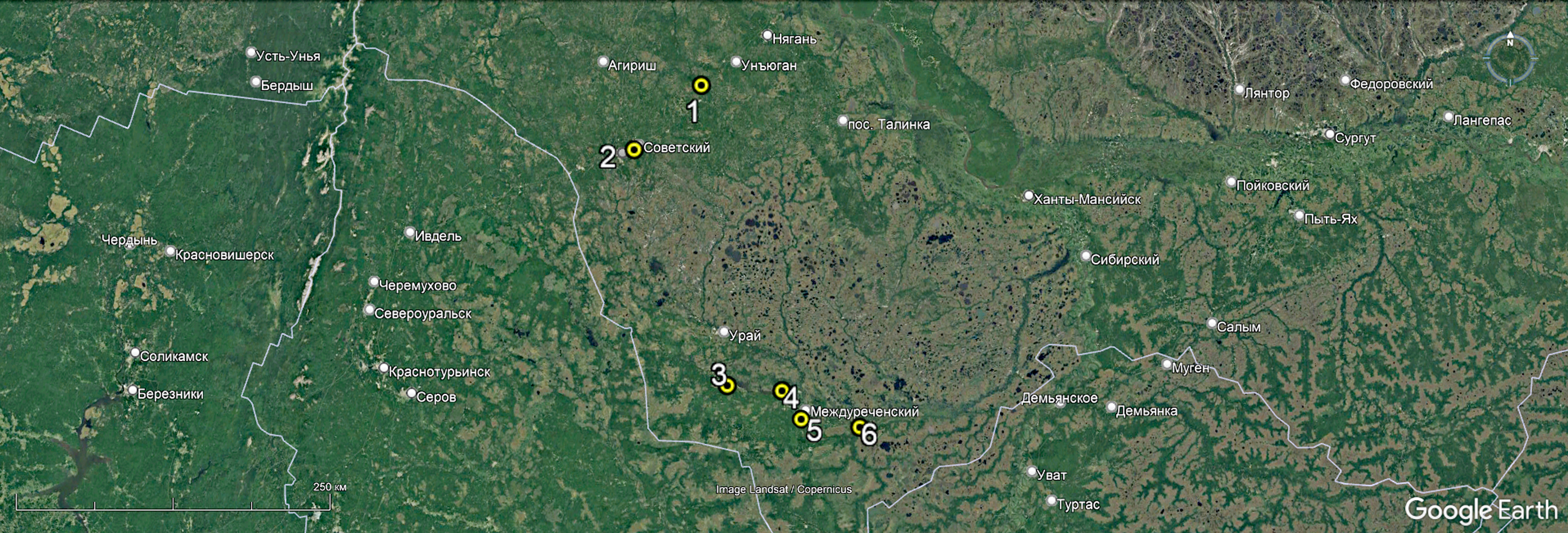 Места обнаружения в ХМАО-Югре. Кондинский район.