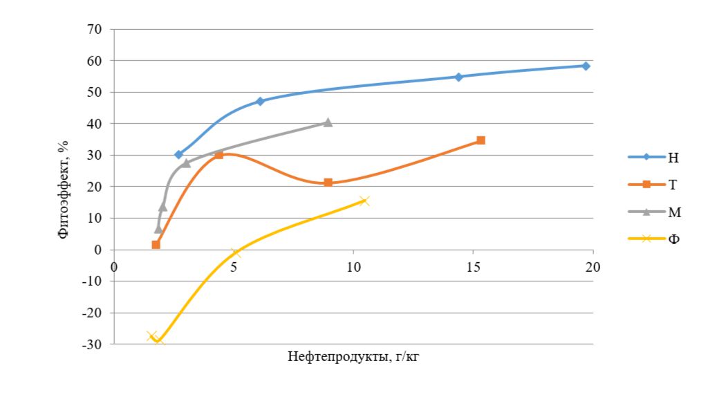 Усмановым с соавторами в процессе исследовательских работ было установлено, что загрязнение почвы нефтью и нефтепродуктами приводит к изменению скорости роста и развития растений [19], показано, что высокие концентрации нефтепродуктов приводят к замедлению развития или гибели растений, что связано с нарушениями водного обмена, затруднением поступления питательных веществ, кислородным голоданием [18].
