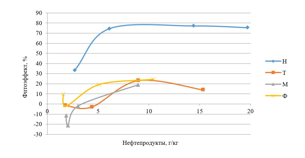 Рекультивационные мероприятия наряду с приемами технической рекультивации, могут включать внесение повышающих окислительную активность почвенных микроорганизмов органических и минеральных удобрений, посадку растений, обогащение почвы специально селекционированными микробными комплексами, другие направленные на интенсификацию деструкционных процессов в нефтезагрязненной почве приемы. Проведение восстановительных, в том числе фиторекультивационных мероприятий, повышает скорость окисления поллютанта, интенсивность процессов восстановления свойств нефтезагрязненных почв [10; 13]. Фиторемедиация включает весь спектр метаболических процессов по поглощению, аккумуляции и разложению поллютантов, обеспечивает стабильное протекание процесса биологического распада углеводородов при относительно невысокой стоимости затрат, не требует снятия плодородного слоя почвы, может применяться на больших площадях. Развитие корневой системы растений улучшает газообмен в глубинных слоях почвы, способствует развитию нефтеокисляющей микробиоты в естественной среде [13].