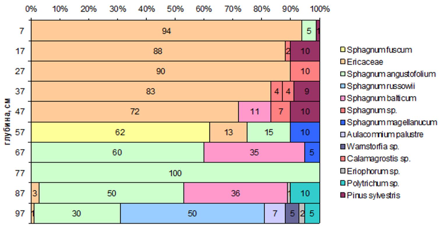 Рис. 4. Ботанический состав торфа разреза 2