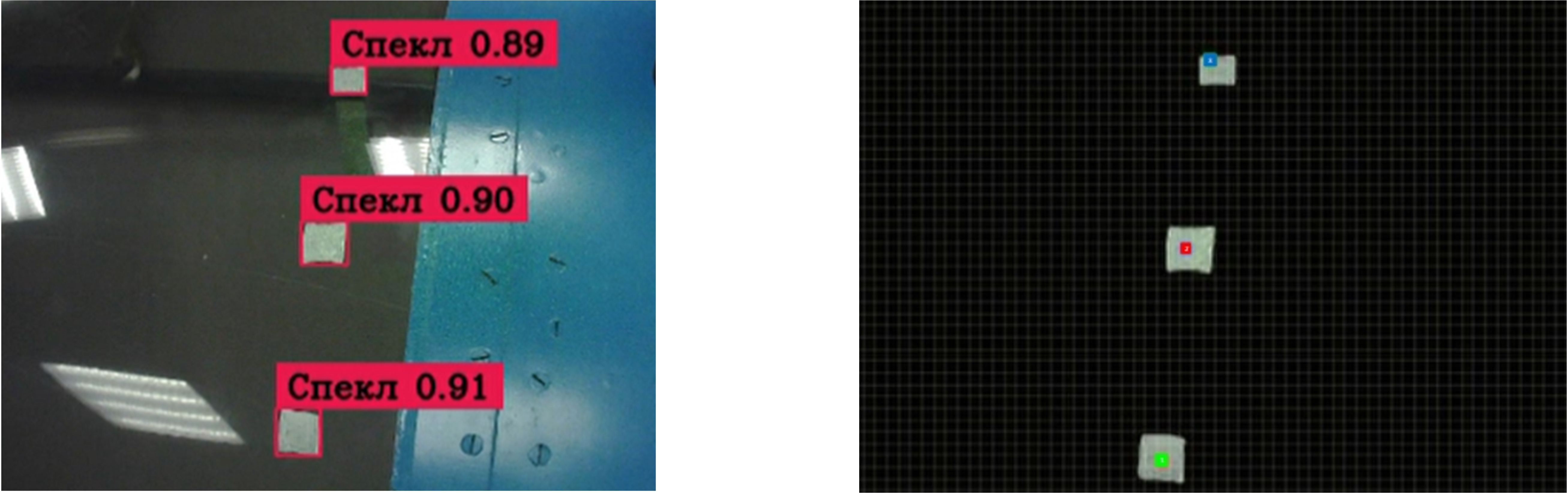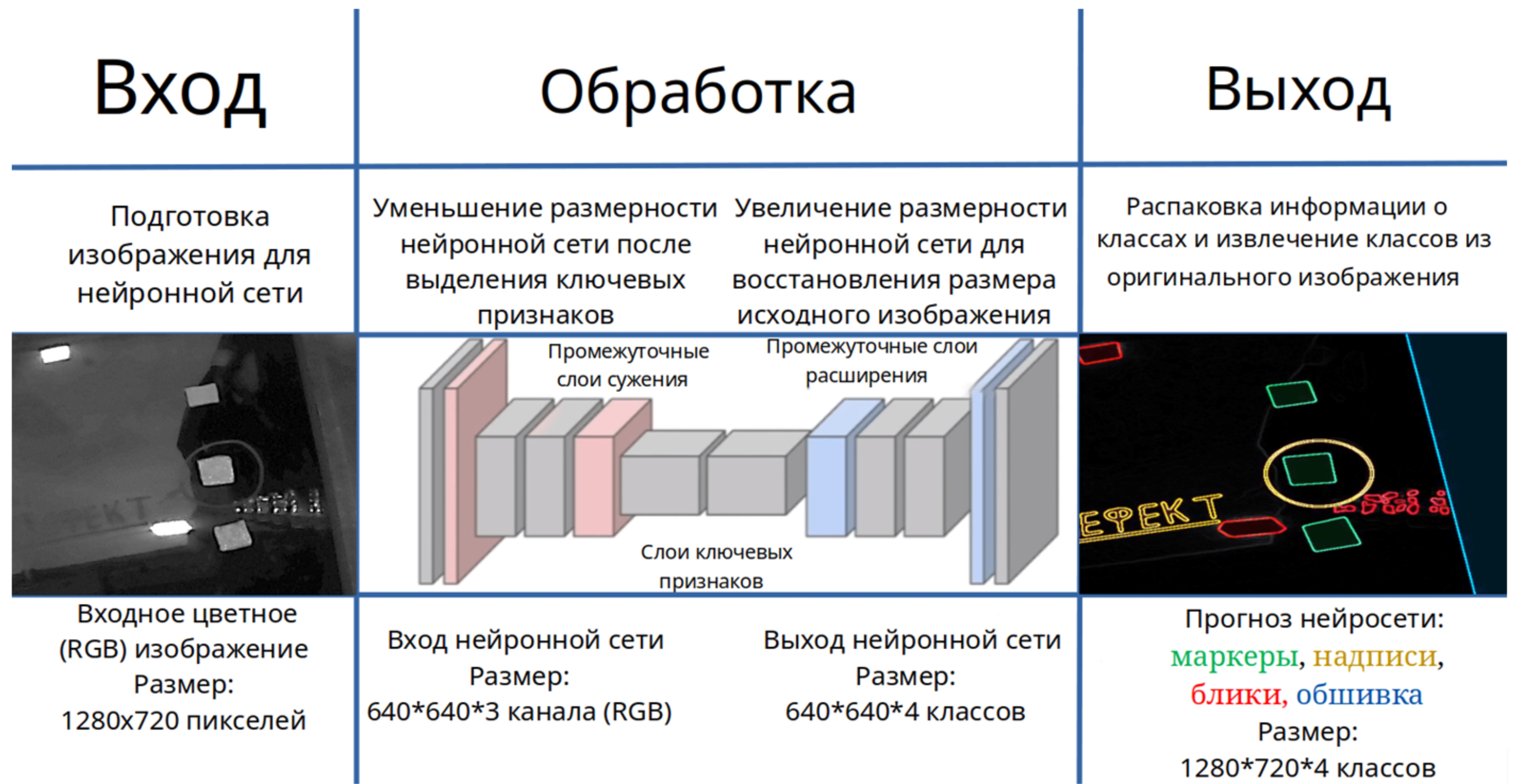 Рисунок 6 – Принцип обработки изображений контрольных маркеров на поверхности остекления нейросетью